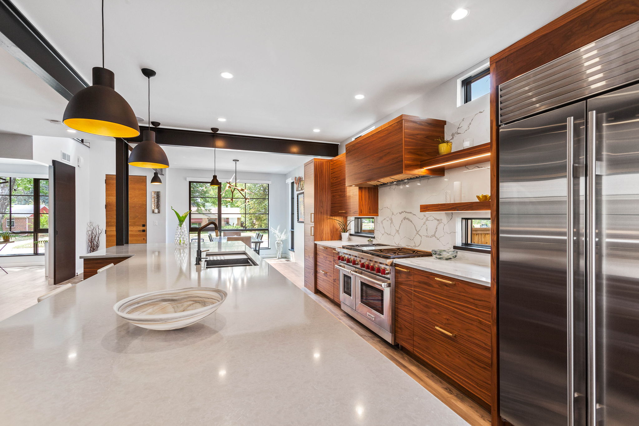 A modern industrial home blends the raw, utilitarian aesthetic of industrial design with sleek, contemporary features, creating a bold yet functional living space. It embraces a design philosophy that highlights exposed materials, open spaces, and a minimalist approach, often resulting in a loft-like atmosphere with an emphasis on urban sophistication.